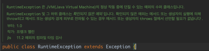 보면 알겠지만, 프로그램이 정상 작동중에 실행될 수 있는 예외라는 뜻이다.
