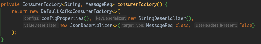 위에서 잠깐 말했지만 producer에서 header를 설정해주거나 consumer에서 설정을 해주는 방법이 있다고 했다.